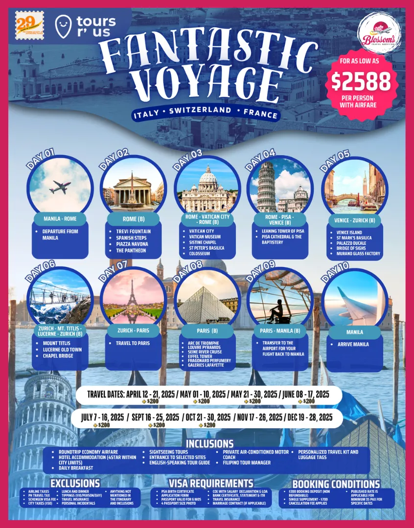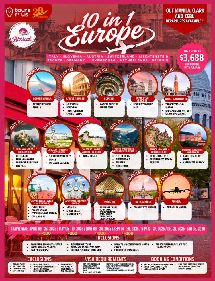 While the Europe tour packages are officially managed by Tours R’ Us Philippines,