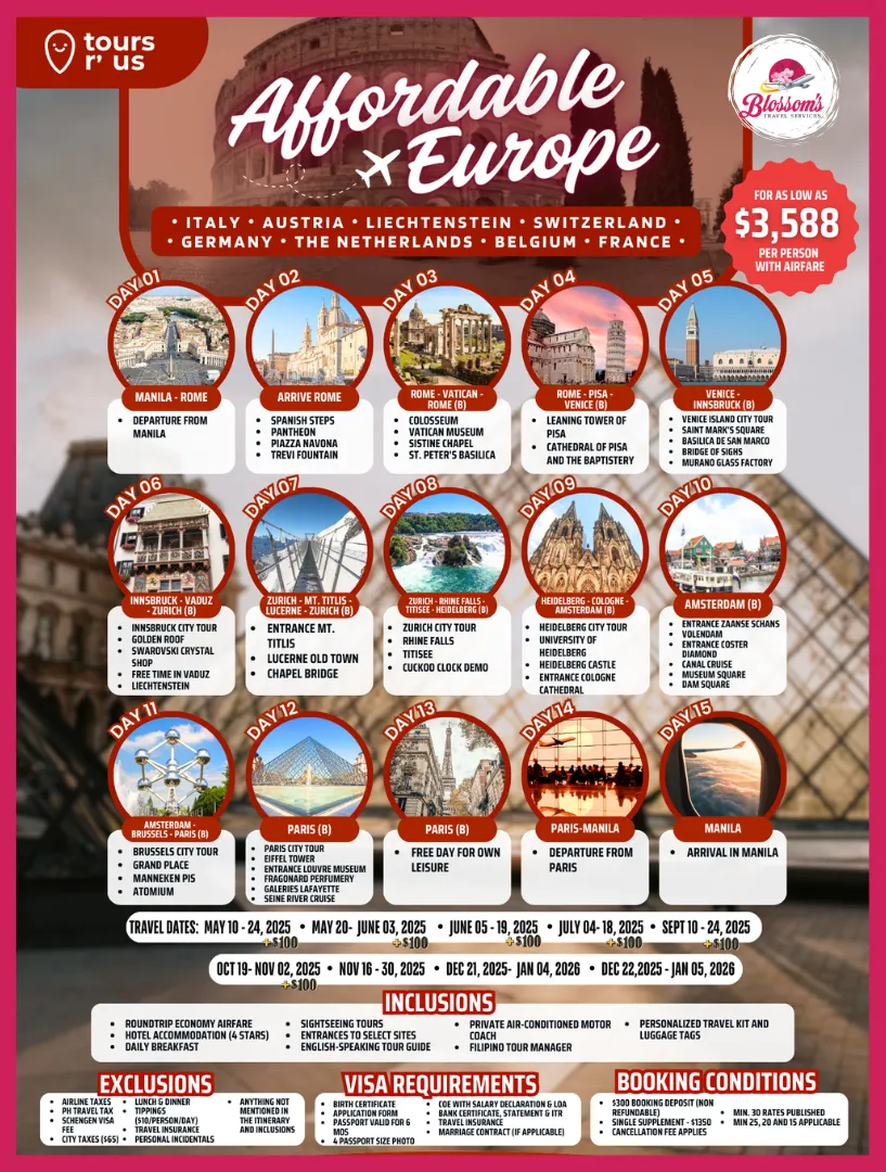 While the Europe tour packages are officially managed by Tours R’ Us Philippines,